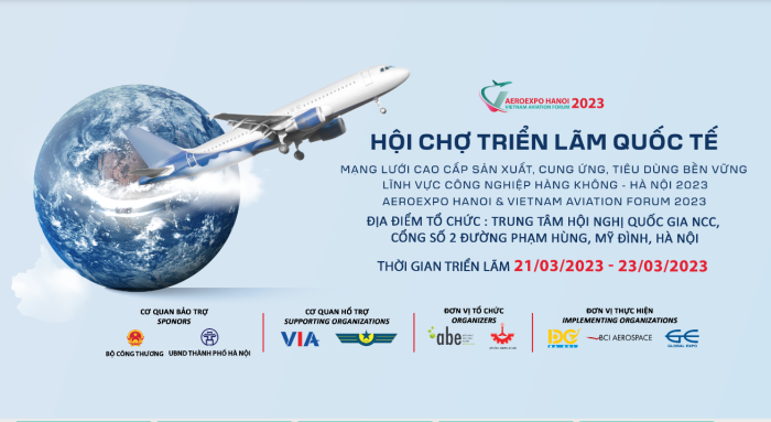 Hội chợ triển lãm quốc tế Mạng lưới cao cấp sản xuất, cung ứng, tiêu dùng bền vững lĩnh vực công nghiệp Hàng không và Diễn đàn Hàng không Việt Nam tại Hà Nội (AeroExpo Hanoi & Vietnam Aviation Forum 2023) sẽ thúc đẩy sự giao thương của ngành công nghiệp Hàng không Việt Nam với ngành Hàng không toàn cầu